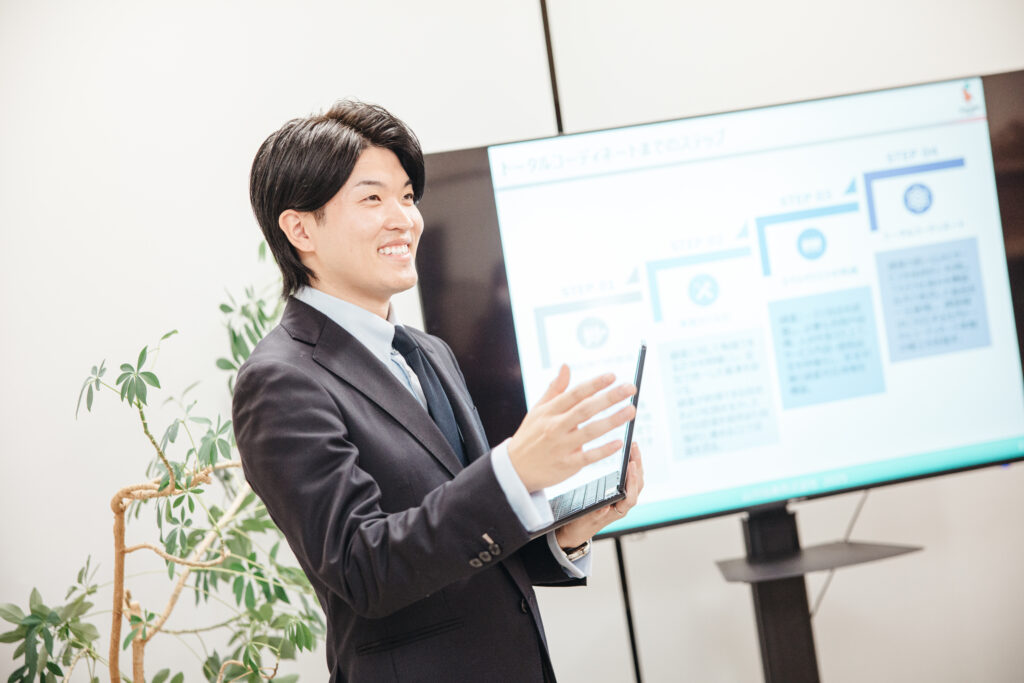 既存事業チームに所属し、会社の既存事業を見直し、今後の会社を支える柱となる事業サービスの検討、全社的な営業活動としてのプロジェクト推進を行います。