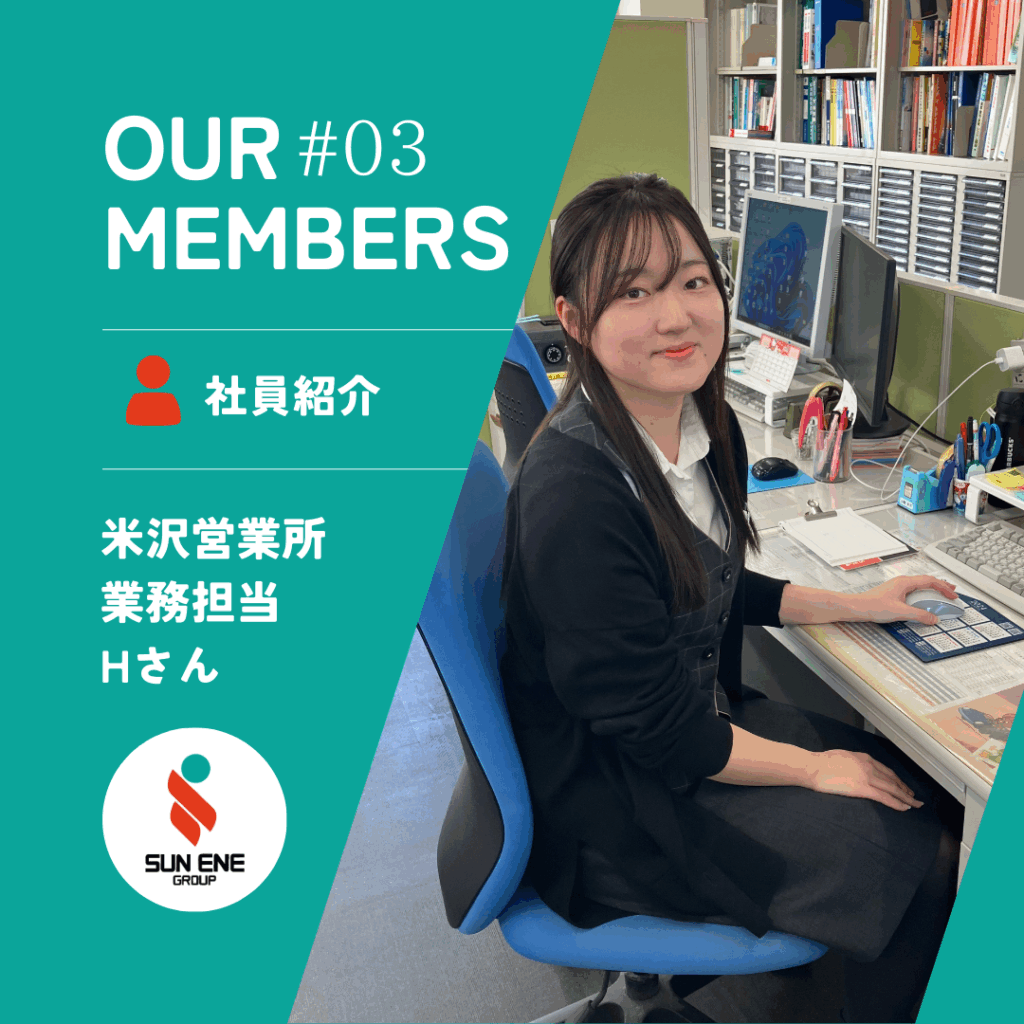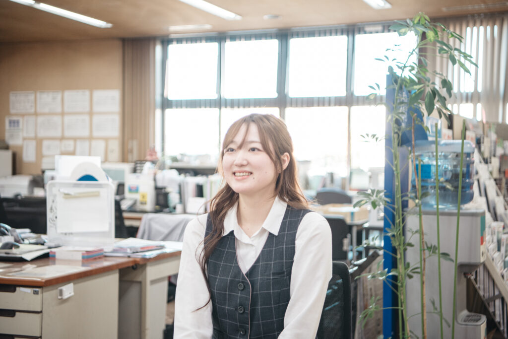 米沢営業所で営業調達事務をしていて、主に、内勤でPCを使用した事務作業とお客様対応を担当しています。